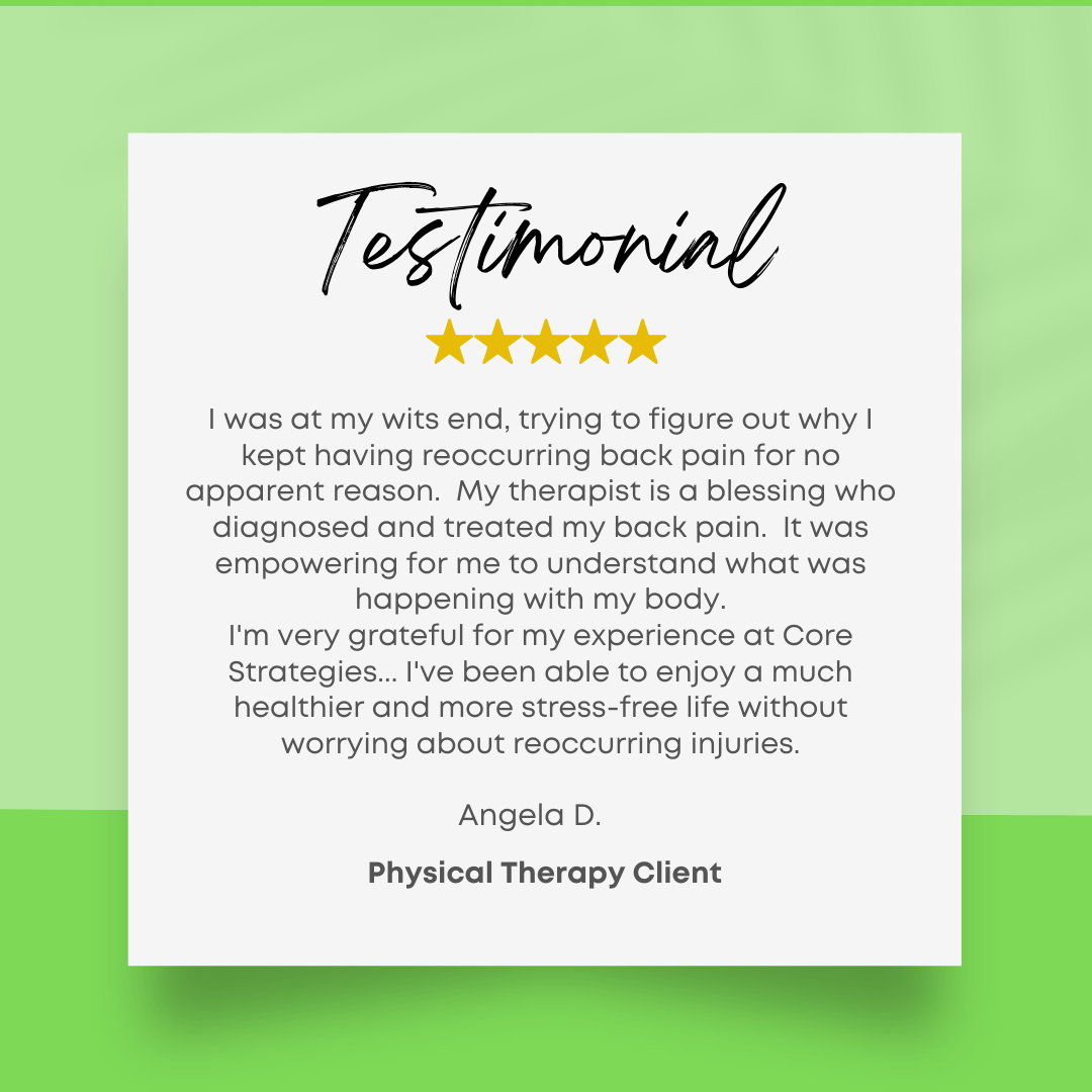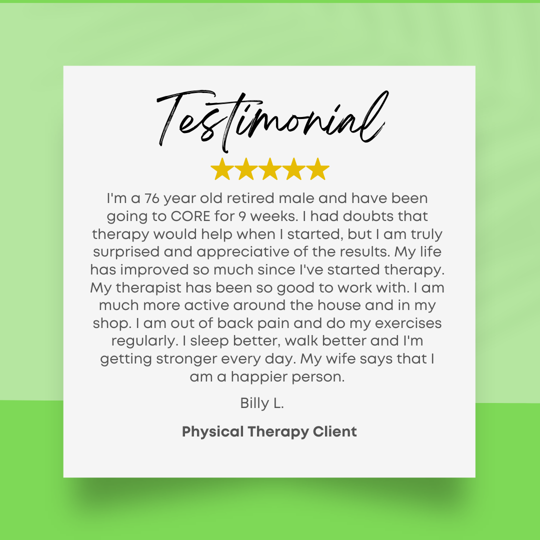 CORE Strategies Physical Therapy is proud to serve the PT needs of the Overland Park community since 2007. Here's a small sample of our patient's feedback throughout the years.